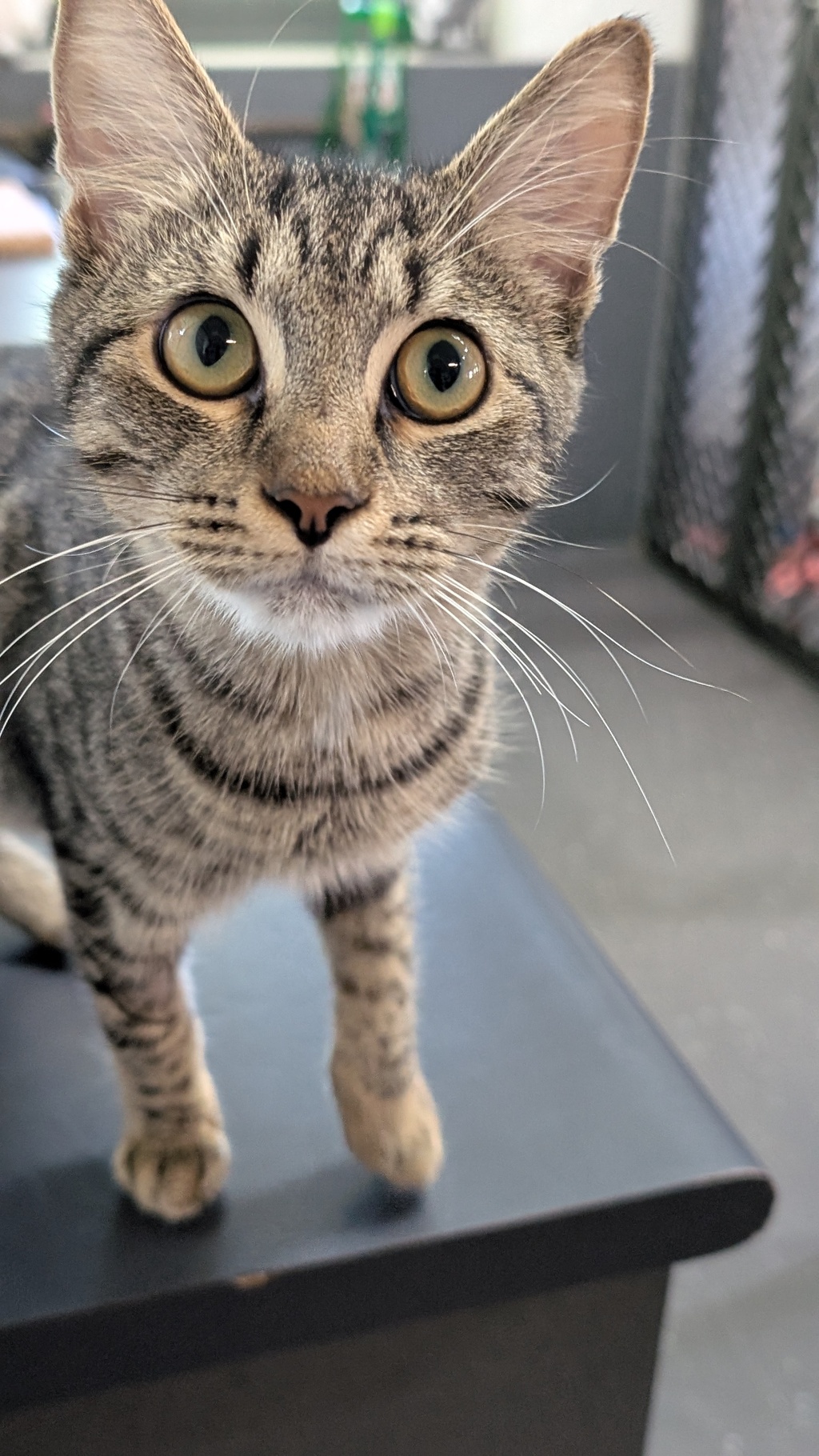 I'm just a young fella, full of curiosity! I love to play and investigate every nook and cranny. I'm friendly with everyone I meet, always ready to make new friends. Cuddling is my favorite pastime, whether it's snuggling up for a nap or curling up on a cozy lap. I'm sweet as pie! I'm ready to bring joy, companionship, and a whole lot of love to a forever home. I promise to be the best friend you could ever ask for!