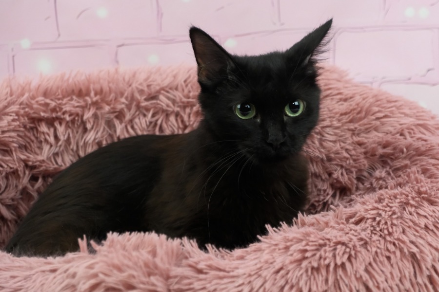 Meet Cammie, a sweet little lady with a luxurious black coat that’s as soft as silk. Cammie is a petite little cat who, being still quite young, is bursting with kitten-like charm. Cammie came into care with her five tiny babies and was an amazing, dedicated mum. Now, it’s her time to shine, and she truly deserves it!