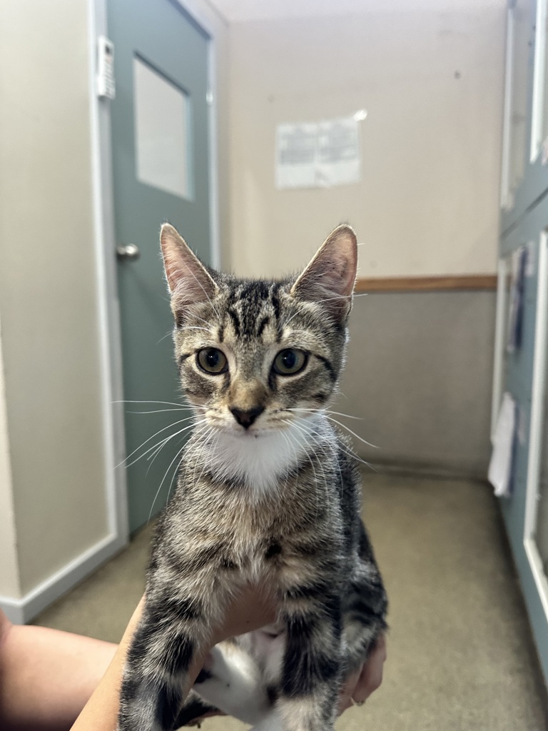 Hey there, I'm Maryanne. I'm a friendly and affectionate kitten who would suit most homes! My playful paws are always ready to pounce on anything that moves. I love playing with wand toys and mysterious shadows on the wall! When I'm finished playing, I love nothing more than finding a warm lap to curl up in. I have perfected the art of the irresistible purr. It's like my secret weapon for getting all the cuddles and chin scratches I could ever want. Life's just one big, exciting string of moments, and I'm here to make every second count - whether I'm chasing my tail or sharing some purr-fectly quiet time with my favourite humans. So, if you're up for a bundle of furry fun and a lifetime of companionship, please consider adopting me!