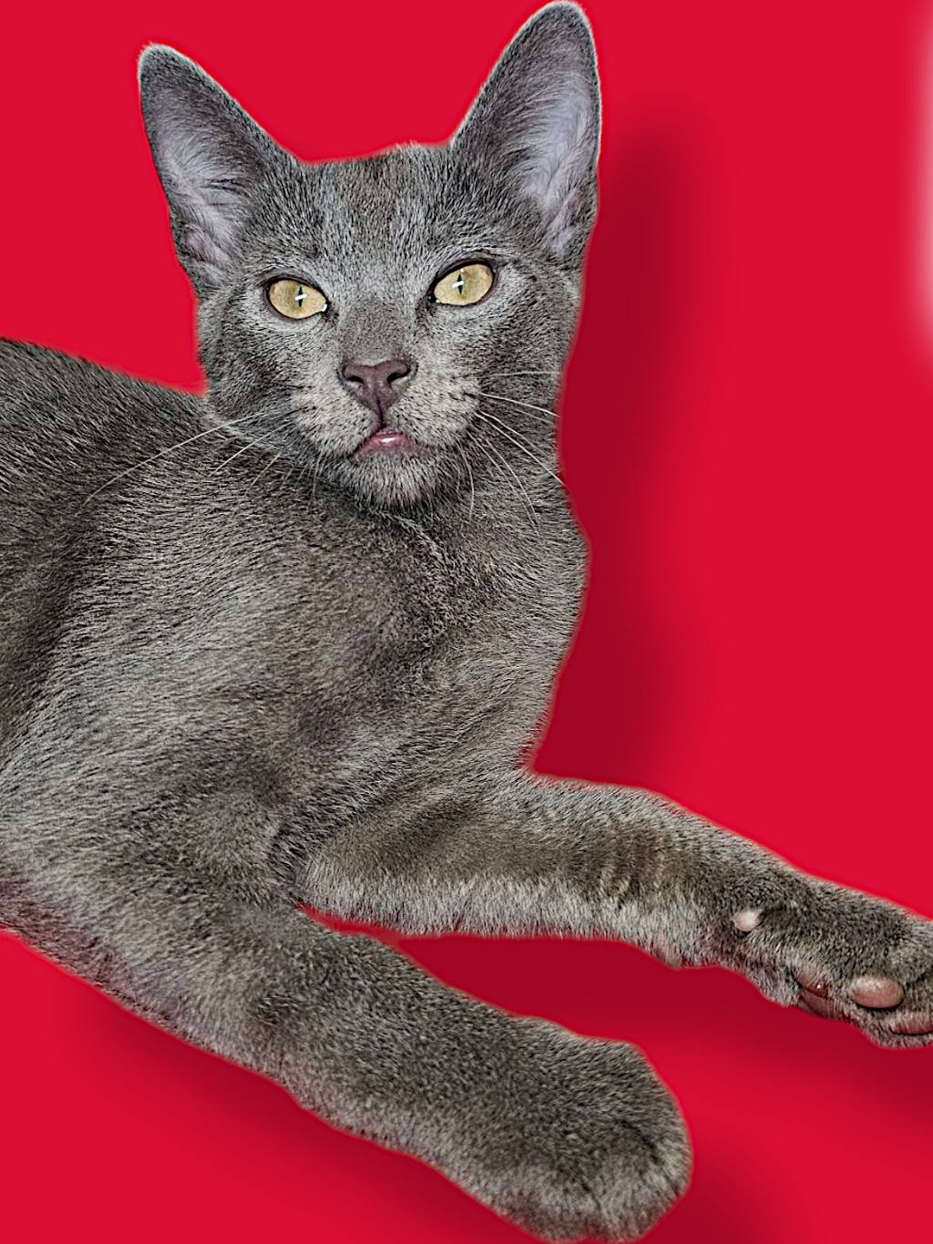 Groot is a handsome, confident 3 ½ month old domestic blue. This boy is not only beautiful on the outside but he's absolutely beautiful on the inside too. He has such a sweet nature, very affectionate, purrs constantly, loves to play, is funny, and loves love.