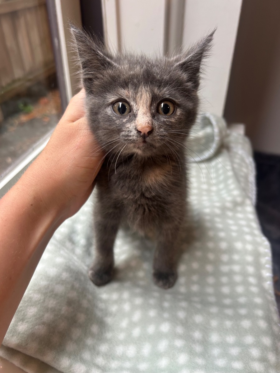 Like most kittens, she is is a little shy to start off with and will need to go to a kind, patient and understanding home that will give her the time that she needs to adjust.