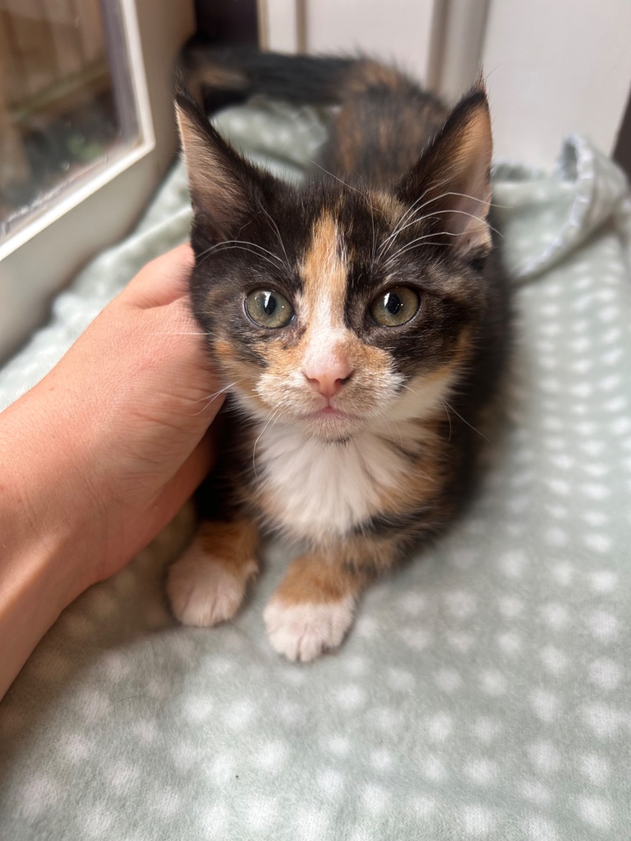 Like most kittens, she is a little nervous to start off with and will need someone gentle, kind and patient to give her the time she needs to settle into a new environment.