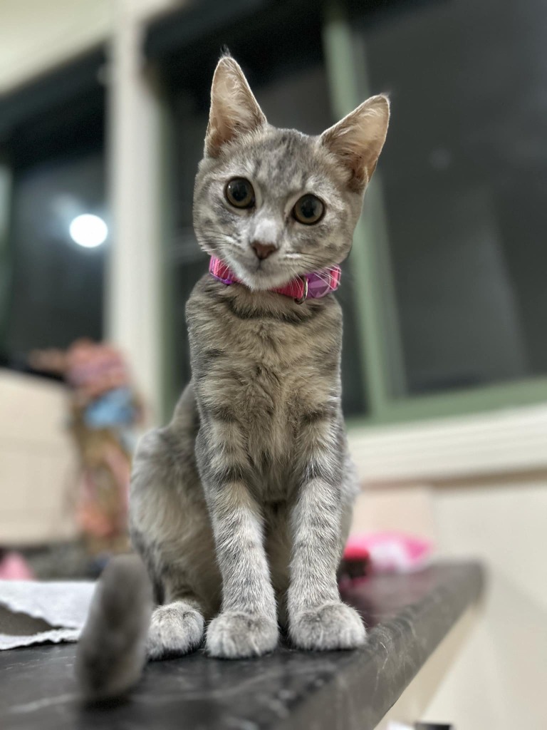 One of Penny’s favorite pastimes? Stealing hair ties! She loves batting them around and turning them into her personal toys. Her curiosity keeps her entertained for hours, and her sweet nature makes her a joy to be around.