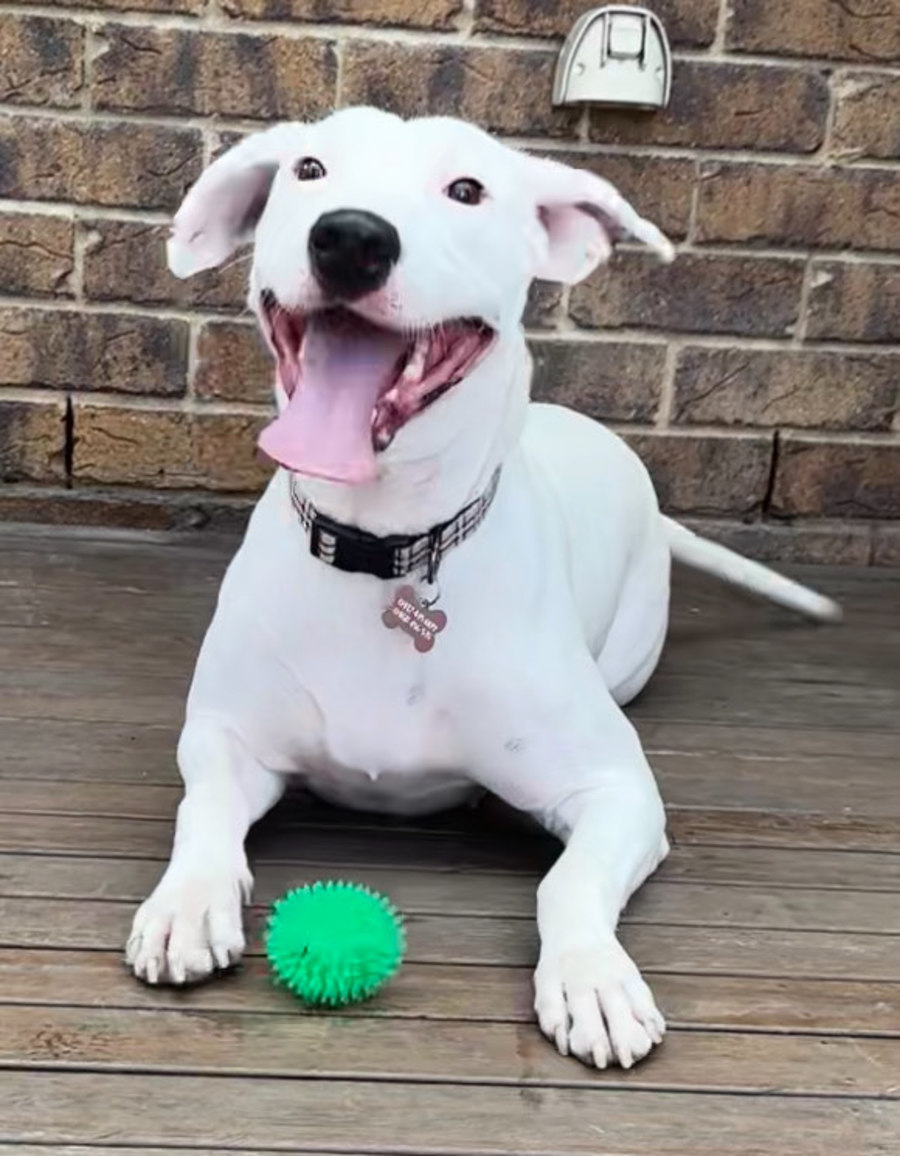 Ruby, a stunning all-white beauty with a button-black nose, is what we affectionately call a "mystery mix" – maybe a dash of Kelpie smarts, a pinch of Staffy sweetness, and a whole lot of love. She's medium-sized, bursting with energy, and ready to add a whole heap of fun to your life.