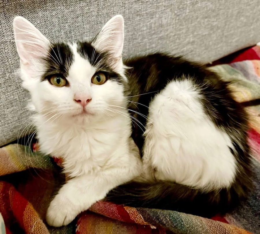 Cordelia is a playful kitten, a bit bolder than her sister Dawn, but also a bit sillier. She’s quite the foodie, and likes to tuck into her dinner ASAP, and then snuggle with either her sister or her mama…or with you?