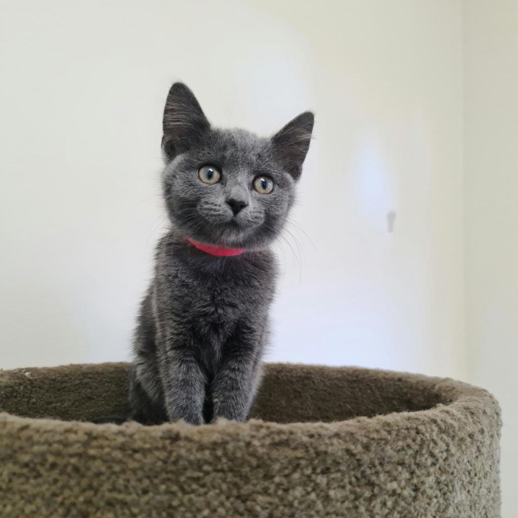 Sweet, affectionate and gentle little Guacamole is looking for her forever home. Guacamole spends her time, cuddly up in a soft blanket, cuddling into people's arms, chasing around toys or wrestling with her friends. Guacamole would be perfect for any family looking for an adorable kitten that will put a smile on their face every day!