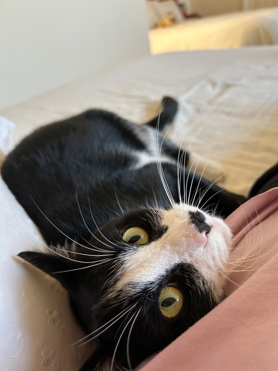 He's generally quite an aloof cat that likes to do his own thing but will often check in with you, come say hello, give you a bit of a cuddle and then continue on his merry way. But when he's in the mood for attention he is not shy to let you know - often jumping up on the desk and looking adorable while you're working.