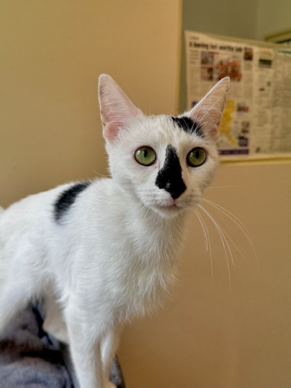 I can be a bit nervous when we first meet – I’m just getting to know you, after all! But once I feel comfy, I’ll be your sweetest little cuddle buddy. I promise, I’m a total softie once I warm up to you! As a young cat, I still have a lot of energy to burn, so I’m up for some fun playtime sessions where I can show off my amazing zoomie skills. After I run around, though, I’m definitely ready to curl up with you for some much-needed snuggles.