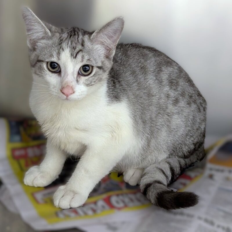 Hello there, I'm Bert, your future cuddle buddy! I'm a 4-month-old male domestic short hair kitten.