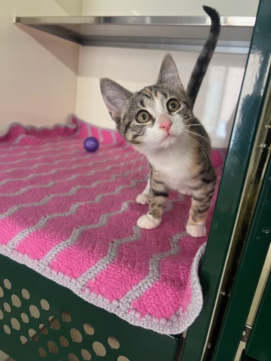 Piccolo is a playful and affectionate kitten with a heart full of love and a purr that never stops. She thrives on cuddles and is always ready to snuggle up in your arms, purring contentedly as you give her all the attention she craves. With her confident and curious personality, Piccolo loves to explore and play, but she also knows that the best moments are when she’s curled up close to her humans.