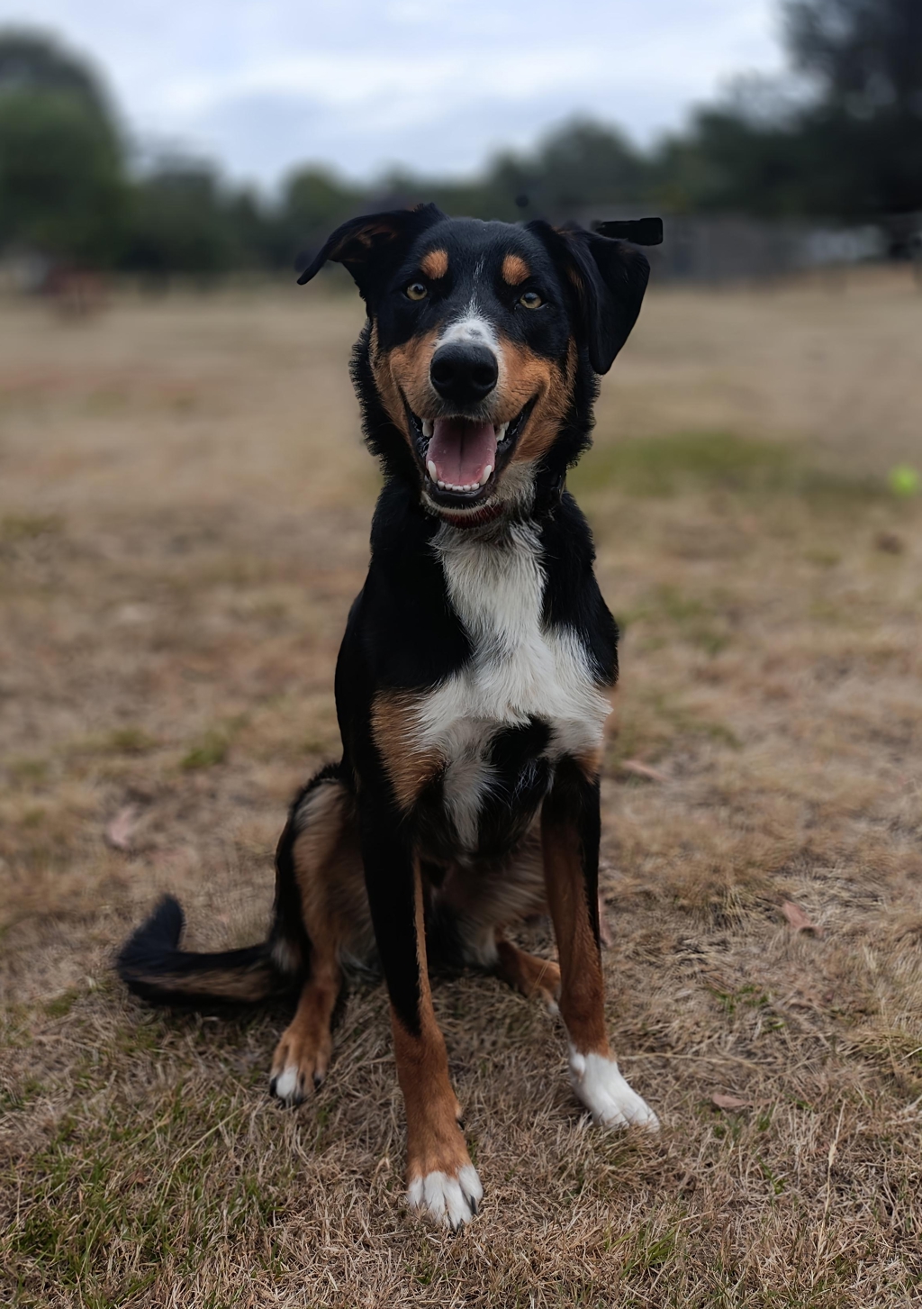 Introducing Rusty, an adorable male Border Collie cross bursting with enthusiasm and charm! At just a year old, this leggy, handsome tri-color pup is full of energy and is looking for an active family who can match his spirited nature. Rusty has been raised in a loving home with another dog and small children, showcasing his friendly demeanor and good manners. However, he does have a penchant for jumping low fences, so a secure yard is a must to keep this adventurous boy safe as he explores his surroundings. While he may initially be shy around new people, with a little patience and love, Rusty is sure to grow into a confident companion.