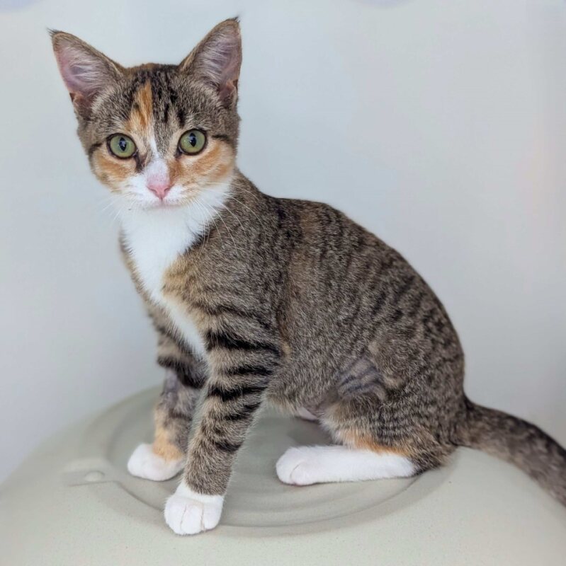 I'm just a little girl, but I've got a big heart full of love to share with you. My favorite activities include pouncing on toys, exploring new environments, and of course, snuggling up for a good nap after a play session. I'm very playful, as any kitten should be, and I promise to keep you entertained with my antics.
