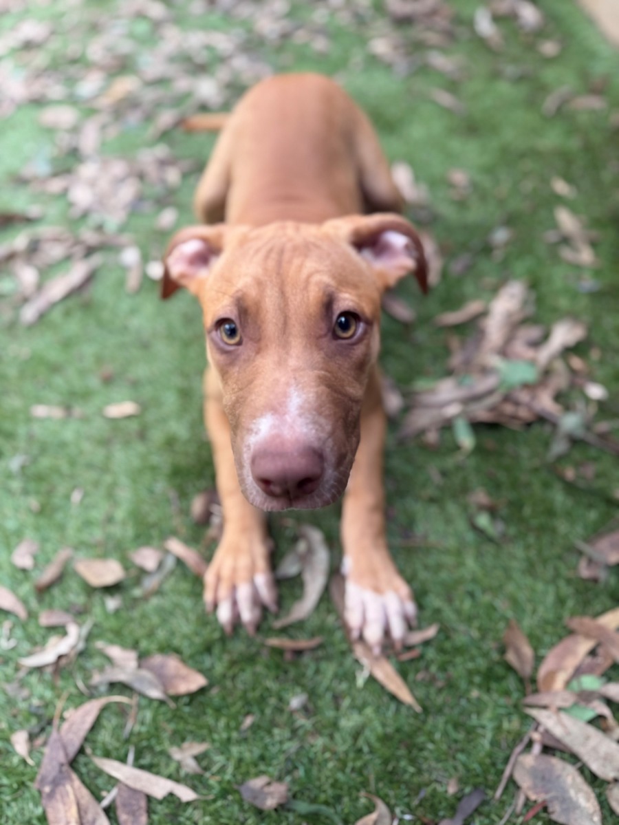 KitKat's love for people knows no bounds, and she eagerly forms bonds with everyone she meets. Her soft eyes and wagging tail are sure to brighten your day. As a young and vivacious puppy, KitKat thrives in the company of other dogs, enjoying playful interactions that showcase her social nature.