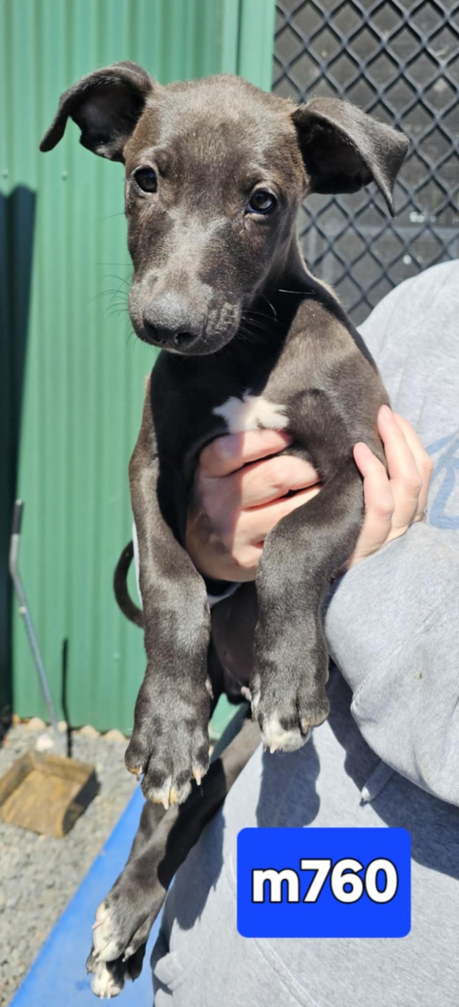 Meet m760, an adorable Whippet mixed with kelpie or border collie, who loves to be involved in everything. m760 has a knack for turning every moment into an adventure, and his playful nature is complemented by an irresistible cuteness. His lively personality will undoubtedly add a heartwarming spark to any household. He loves nothing more than playing with his toys, munching on delicious treats, and then curling up for a well-deserved nap.