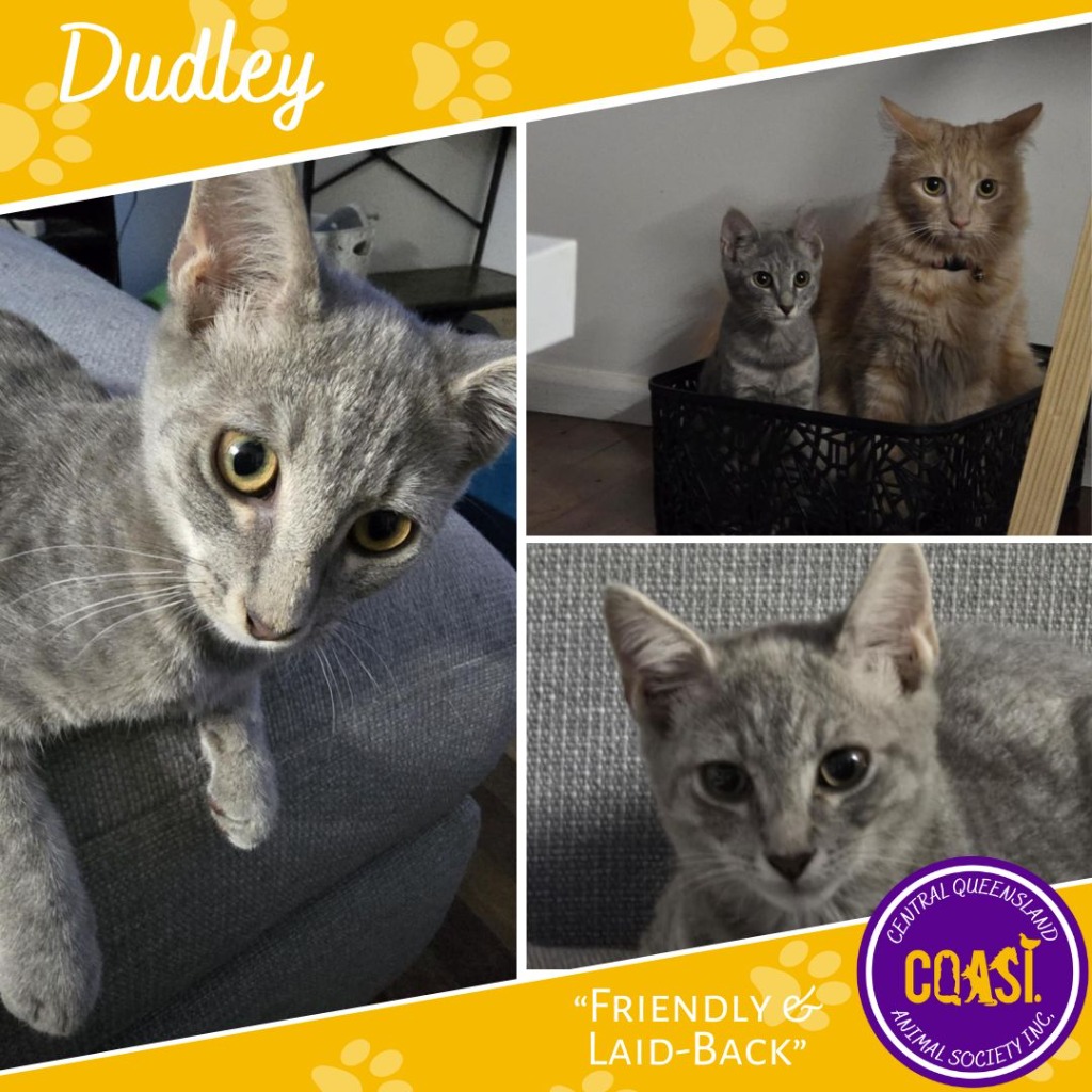 Hi there! I'm Dudley, your friendly feline companion. I love nothing more than curling up next to you while you watch TV or dive into a good book. When I settle in, I like to stretch out my long legs and relax for a cozy snooze.