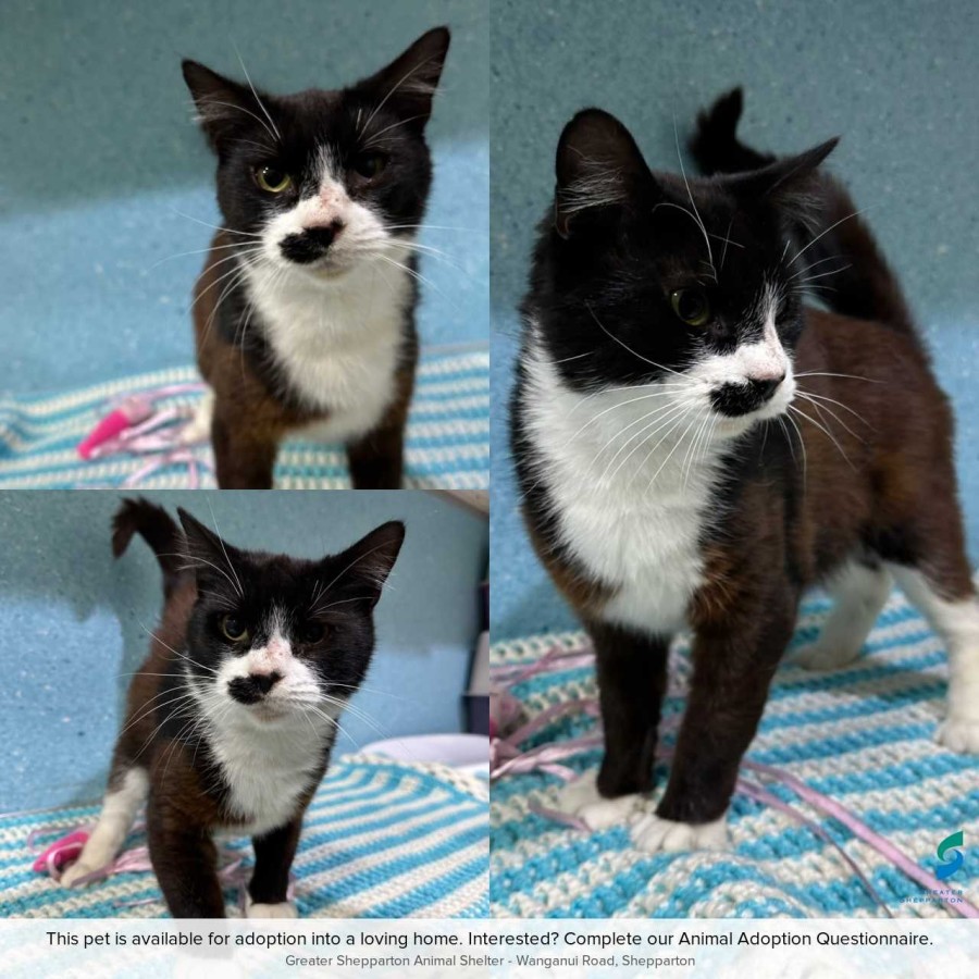 Introducing GWEN, a beautiful black and white, Domestic Short Hair feline now available for adoption! With their adorable beauty spot and sweet demeanor, Gwen is a truly special companion ready to bring love into your home.