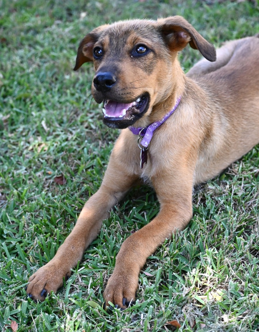 Despite Caramel being only a puppy, she is eager to learn and extraordinarily smart. With boundless playful energy, she's already mastered commands like sit and lay down, and she's making great progress with her patience training—all fueled by her love of food! Training Caramel is a breeze with her food-motivated enthusiasm.