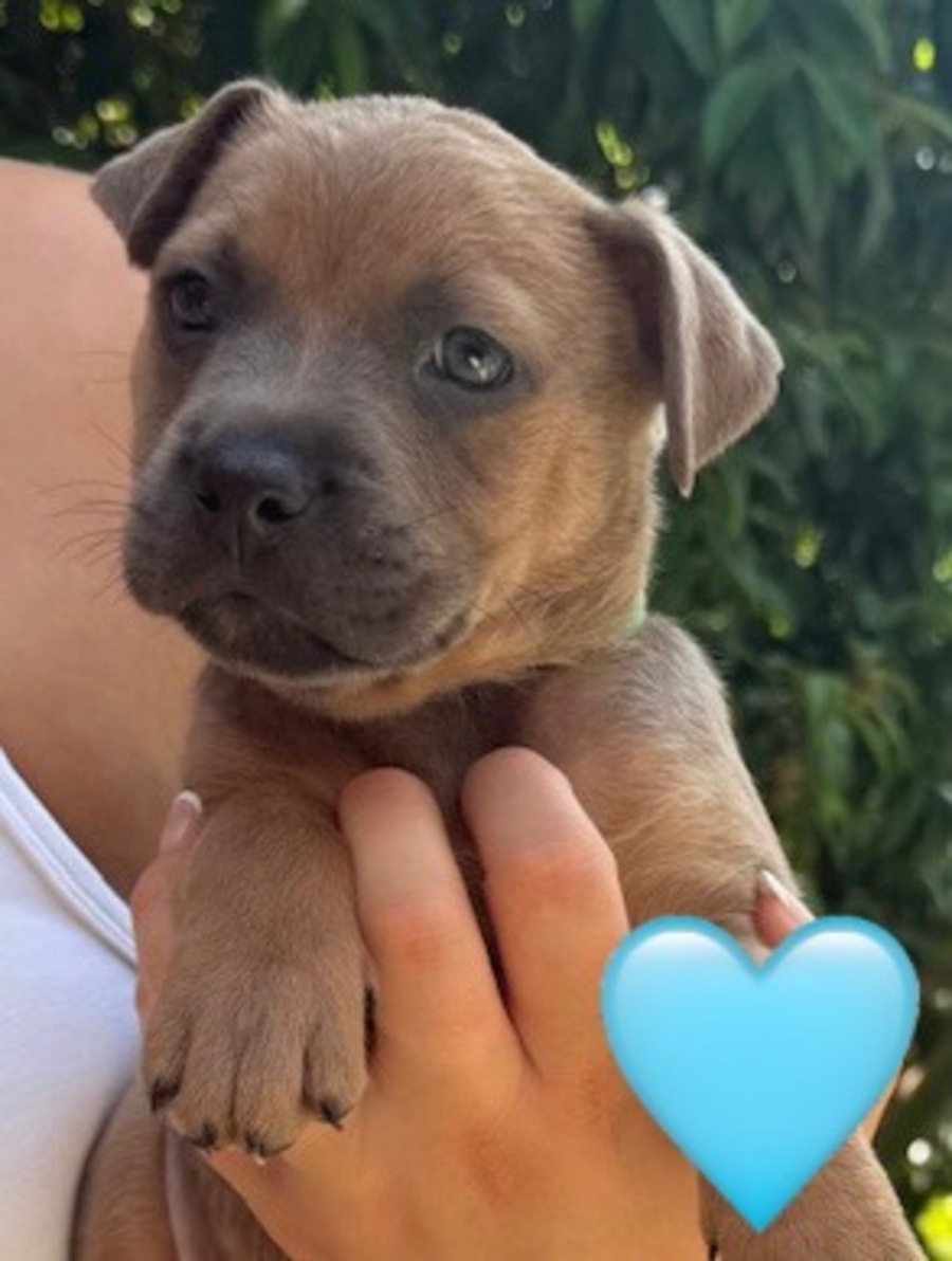 Stanley is a real cutie pie. He is very affectionate and loves a cuddle from his foster mum. Stanley looks to have Staffy in his breed but he is only 2.5kg at the moment so we believe he might be mixed with a small breed pooch. Stanley loves to rumble with his siblings and enjoys play time with lots of toys as well. Stanley would love to find a forever home with humans who allow him inside and include him in family activities and outings. Stanley would love regular walks to the dog park or beach and would be happiest with a backyard to play in.