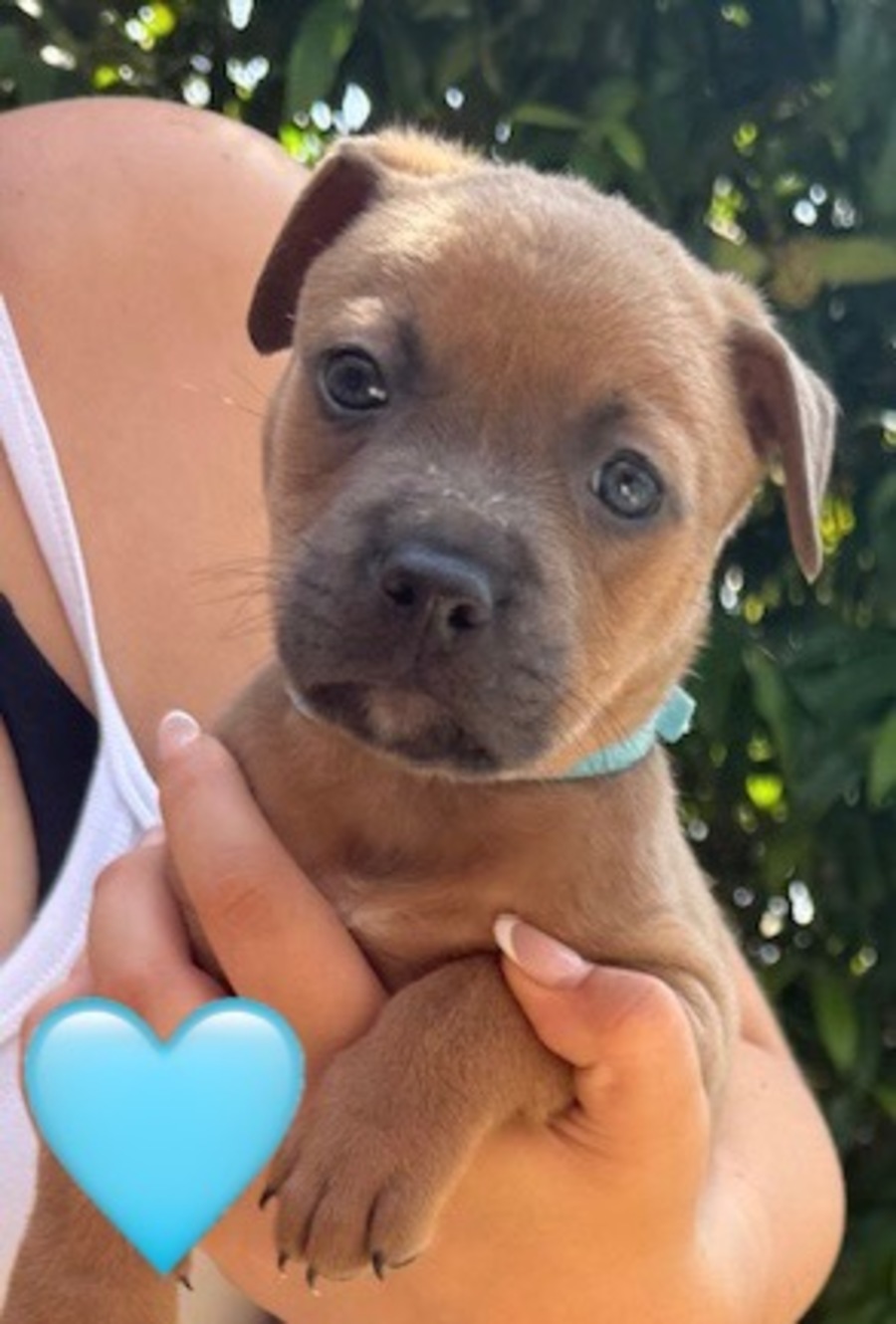 Henry is a real cutie pie. He is very affectionate and loves a cuddle from his foster mum. Henry looks to have Staffy in his breed but he is only 2.5kg at the moment so we believe he might be mixed with a small breed pooch. Henry loves to rumble with his siblings and enjoys play time with lots of toys as well. Henry would love to find a forever home with humans who allow him inside and include him in family activities and outings. Henry would love regular walks to the dog park or beach and would be happiest with a backyard to play in.