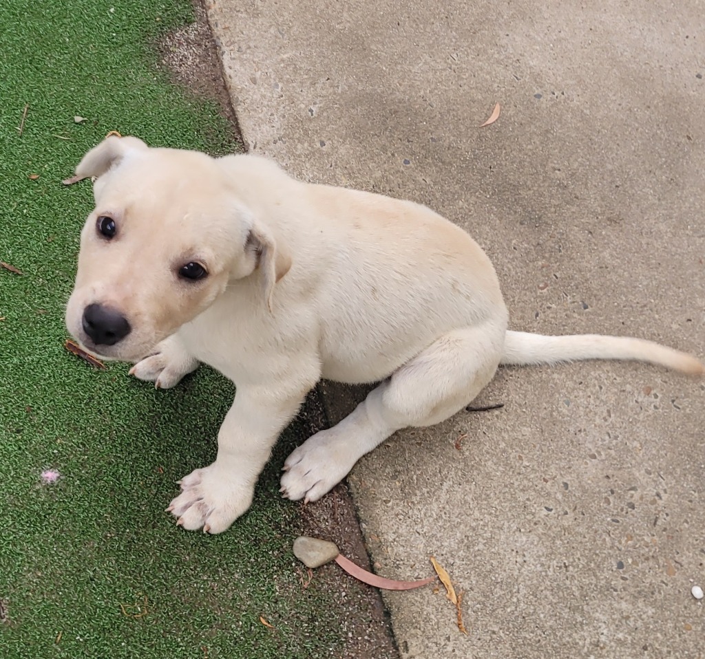 I'm a super friendly, outgoing young lady. I'd love to play with you and other dogs, and I'm lovely with my littermates. I'll probably be a large dog when grown.