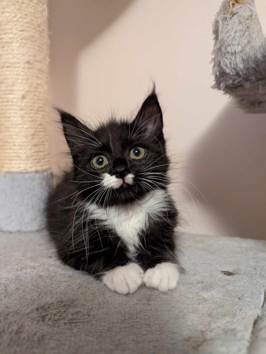 Figaro is the picture of social grace, brimming with confidence around other cats and kittens. He naturally takes on the role of leader, guiding his feline pals into friendship and ensuring that playtime is always full of fun and good cheer. A sweet bundle of fluff, Figaro has an innate ability to make the world a brighter place with his affectionate nature and engaging presence.