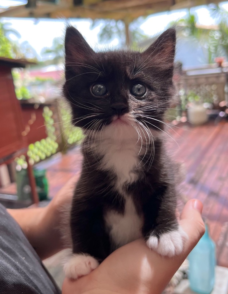 I'm Quentin or mum calls me Sir Chonk or purr monster. I was the biggest out of Quaver and myself and so mum could tell the difference we were called Sir Chonk and Less Chonk. I've been a spitfire since mum met me at 2 weeks old. I sassed mum so much she put me in time out, outside the box until foster mum put me back with her and much grumbling occurred. I'm the most happy getting pats or being picked up. I've seen my foster mum's dogs, but we haven't been formally introduced. Mum loves to smoosh me and cover me in kisses while I purr at her. We have a cat wheel in our enclosure and mum can't tell who it is that is using it lots because we stop as soon as she checks, we're funny.
