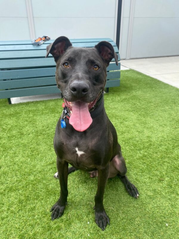 At 3 years old, he’s ready to graduate from “Shy Guy” to “Social Butterfly” with a little help from his forever family. Dante is like that friend who’s a bit awkward at first but is the life of the party once he’s had a snack (or a squeaky toy). Dante can get a bit excitable and has been known to jump up playfully. Given his size, he might unintentionally bowl over younger kids. However, he’s quick to recover and can redirect his energy to toys or zooming around! So dog confident children would suit his bouncy personality.