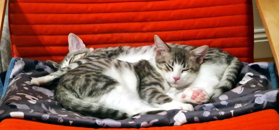 Charlie & Lola are not as trusting and relaxed (at this stage) as kittens of their age usually are. I am confident given more time spent with patient person/people this will change as they have come a long way since in our care. Initially hiding and afraid of noise/sudden movements etc. They both now ‘hang out’ with the person/people they feel safe with and seek their company, sitting close (I think they will both be bed/couch cats - always they head for the couch when exploring the main areas of the house) and generally wanting to be with people. They both love to play and actively engage when we play with them. They both enjoy playing with one another and groom each other. Charlie & Lola are most bonded siblings and rely to some degree on one another. Charlie initially seems the more confident of the pair (Charlie currently enjoys more touch pats/brushes than Lola); he is definitely curious but Lola is the one to come first for food and loves to explore - she especially loves the high cat tower. Both kittens discovered they love to sleep in the high cat tower beds soon after they arrived, they both feel safe when nice and high. I do often find them sleeping on the couch too.! These kittens have been a joy to care for and rewarding to see how much confidence they have been gained in a relatively short time. They will bring such joy to whoever is fortunate to welcome them into their lives.