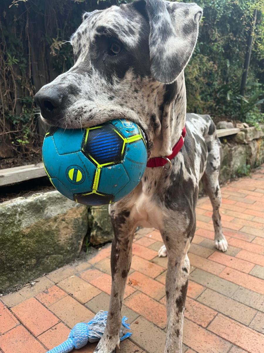 Bongo is playful and excited by soccer balls and ropes, and he thrives on interaction. He’s toilet trained and loves cuddles. He does tend to slobber, especially when excited, but if you’re ready for a little extra drool, you’ll get tons of love in return!