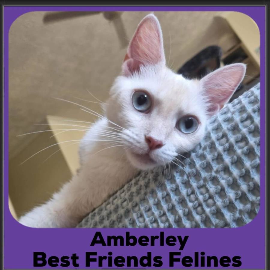 She enjoys following you from room to room and is always interested in what’s happening up on the kitchen and bathroom benchtops, she comes and greets you at the front door when you get home and has a little meow when she wants something. Amberley really enjoys lots of eye contact and listening to your voice talking to her, she gives little meows back to you.