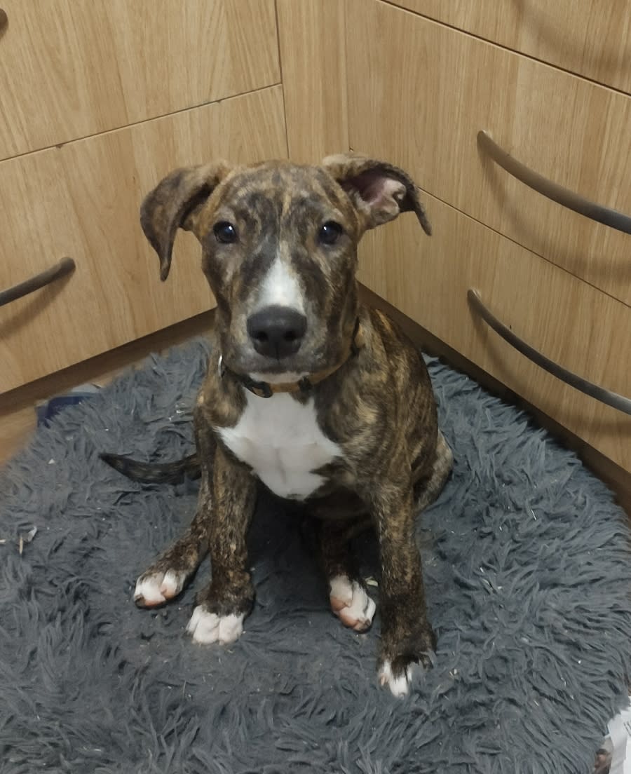 Meet Brandy, an adorable 12-week-old female American Staffy cross, brimming with affection and energy. This sweet cuddle bug will melt your heart with her loving nature and boundless enthusiasm. Brandy is in the prime of her puppyhood, eager to explore the world around her and make new friends, whether they walk on two legs or four!