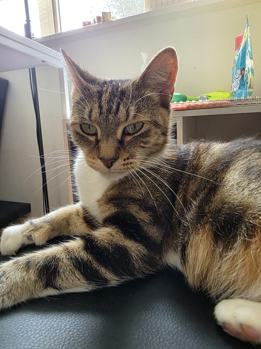 She is a graceful and relaxed lady who’s ready to settle into the quiet life. Now that her kittens have grown up, she’s looking for the perfect windowsill where she can watch the world go by in peace. Friendly and social, Ophelia enjoys a good chill session with her human companions, always happy for gentle pets and quiet company.