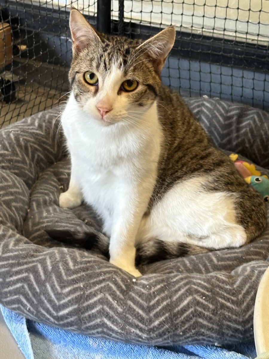 Swiss is a lovely 9mth old tabby , he loves loves loves to play and will make the other kittens play with him!