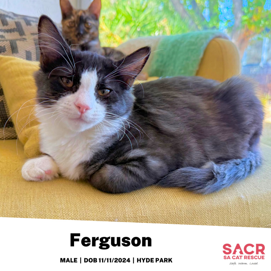 Ferg’s purrfect home is a peaceful sanctuary where he can explore and lounge at his own pace. He’d be equally happy as a solo cat or with other gentle pets. If you’re looking for a sweet soul to bring calm and companionship to your home, Ferguson is your guy.