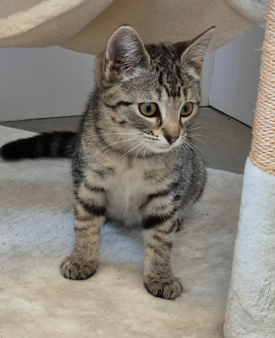 Meet Kiwi, a sweet and spirted 5-month-old kitten ready to steal your heart! She’s full of energy, loves to play, and is always up for an adventure. Kiwi is curious, affectionate, and enjoys cuddling after a fun play session. She’s looking for a loving home where she can explore, grow, and receive all the love she deserves. If you’re looking for a playful and loving companion, Kiwi is perfect