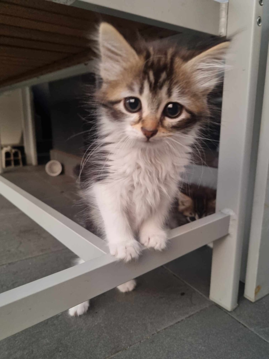 Meet Peggy, the affectionate and fun-loving feline who is sure to add a spark of joy to your life! Whether she's chasing her favourite toy or snuggling with her siblings, Peggy is always up for an adventure, her eyes reflecting a world of curiosity.