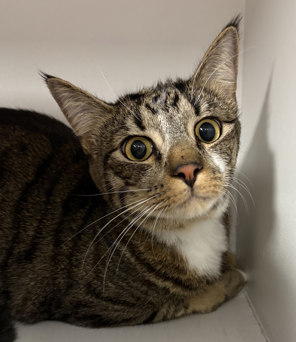 Leo came in with Arrietty who he shares his pen with. Leo is a sweet, shy boy who needs to go to a home with another cat. The cattery is a busy noisy place, so he would love to go home with you and have his own forever home. Please come in and meet him any day between 11.30 and 3.30.