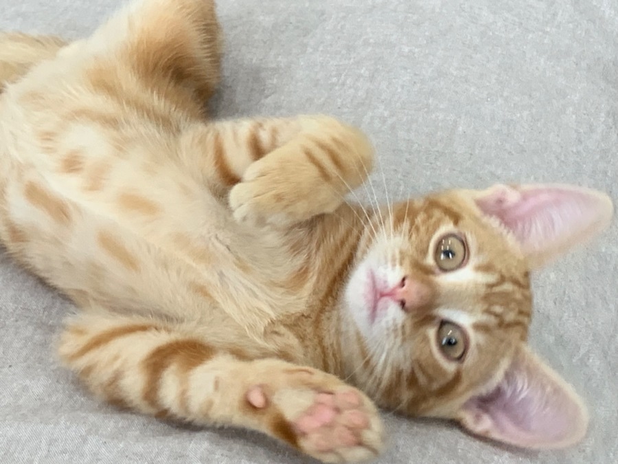 Ginger is a very sweet, smoochy boy, that is playful and curious. He has beautiful markings, and giant ears. When he's watching you, he gets this cute quizzical look in his eyes, like he is trying so hard to understand the world around him. He is a kitten, so is very busy doing kooky kitten things, but will stop for an opportunity to play with his human. Dangly things on fishing rods is his favourite. He also loves tunnels and crunchy kick toys.