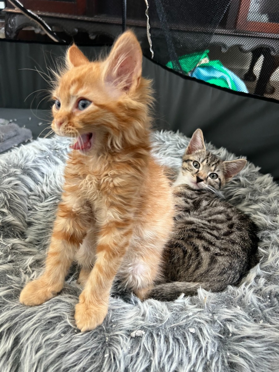 Watch out, here come a pair of illegally cute munchkins with killer names to boot! Tax Evasion (orange fluffy Puss-in-Boots look-a-like) and Debt Collector (striking Tabby on your case) are here to do crime and count your dime!