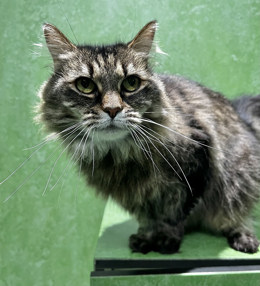 This lovely girl still has a playful side and might be ok with some older or cat-savvy kids. Fifi enjoys a variety of enrichment activities to keep her engaged. Whether it's exploring a scratching post, batting around a toy, or lounging on a cosy perch, Fifi enjoys the little joys in life. Because of her long, beautiful coat, she will need regular brushing to keep her comfortable and tangle-free.