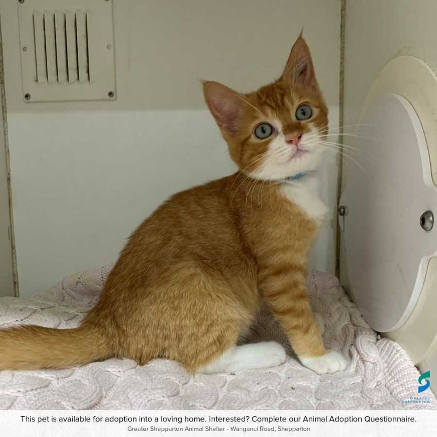 How can you say no to this adorable little face! 😏 Carrot is a ginger tabby and white Domestic Short Hair kitten with a sparkle in his eye and a heart full of love.