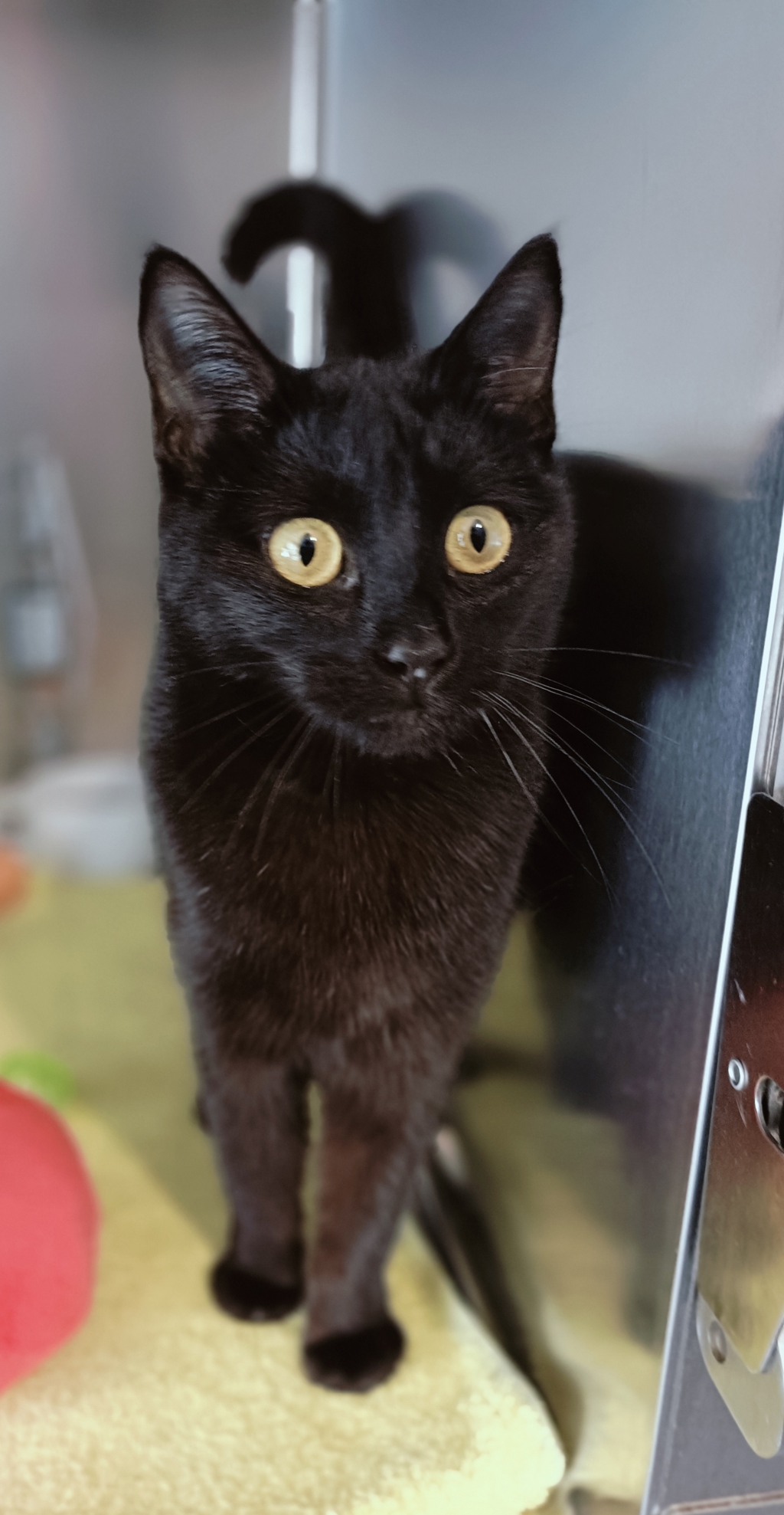 Meet Cinder, a beautiful older kitten with a stunning black coat and bright eyes that will melt your heart. Cinder has a lovely, playful nature and is always ready for a good time. She was found as a lost stray, but unfortunately, her previous owner never came forward to claim her. Despite this, Cinder has a gentle soul and loves being around people.