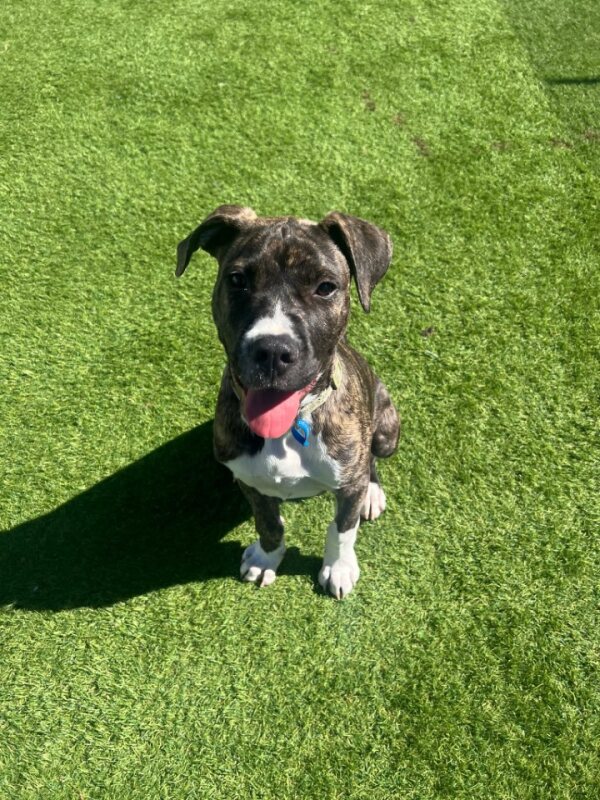 I'm a lively little Staffordshire Bull Terrier puppy, full of energy and ready to explore the world with you. I'm a male pup with plenty of spark and a healthy dose of curiosity. While I'm still young and learning about life, I'm eager to get to know you and become your new best friend. I thrive on daily learning opportunities and I'm keen to show you what a quick learner I am. I can be a bit selective when it comes to other dogs, so it's best to keep me on a leash during our outdoor adventures. But don't worry, I promise to make up for it with loads of love for you and every human friend we meet. I have no known issues with children or other animals in the home, which makes me a great addition to any family. I'm seeking a home with someone who works average work hours and can keep up with my high-energy lifestyle. I need someone who can play, teach, and spend quality time with me.