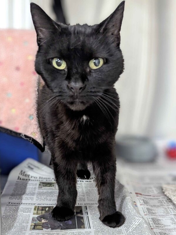 Hello there, my name is Katie! I'm an 11-year-old Domestic Short Hair cat with a heart full of love to share. I'm a lady, and like most ladies, I appreciate the finer things in life, like cozy naps in the sun, delicious meals, and gentle strokes from a loving human. I can be a bit shy at first, but once I get to know you, I promise to be your loyal companion. I may be mature in age, but that just means I'm experienced in the art of companionship. I promise to bring a serene and comforting presence to your home. So, if you're looking for a low-key, affectionate friend who will always be there to listen, I'm your cat. Would you consider giving this mature belle a chance to be your forever friend?