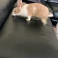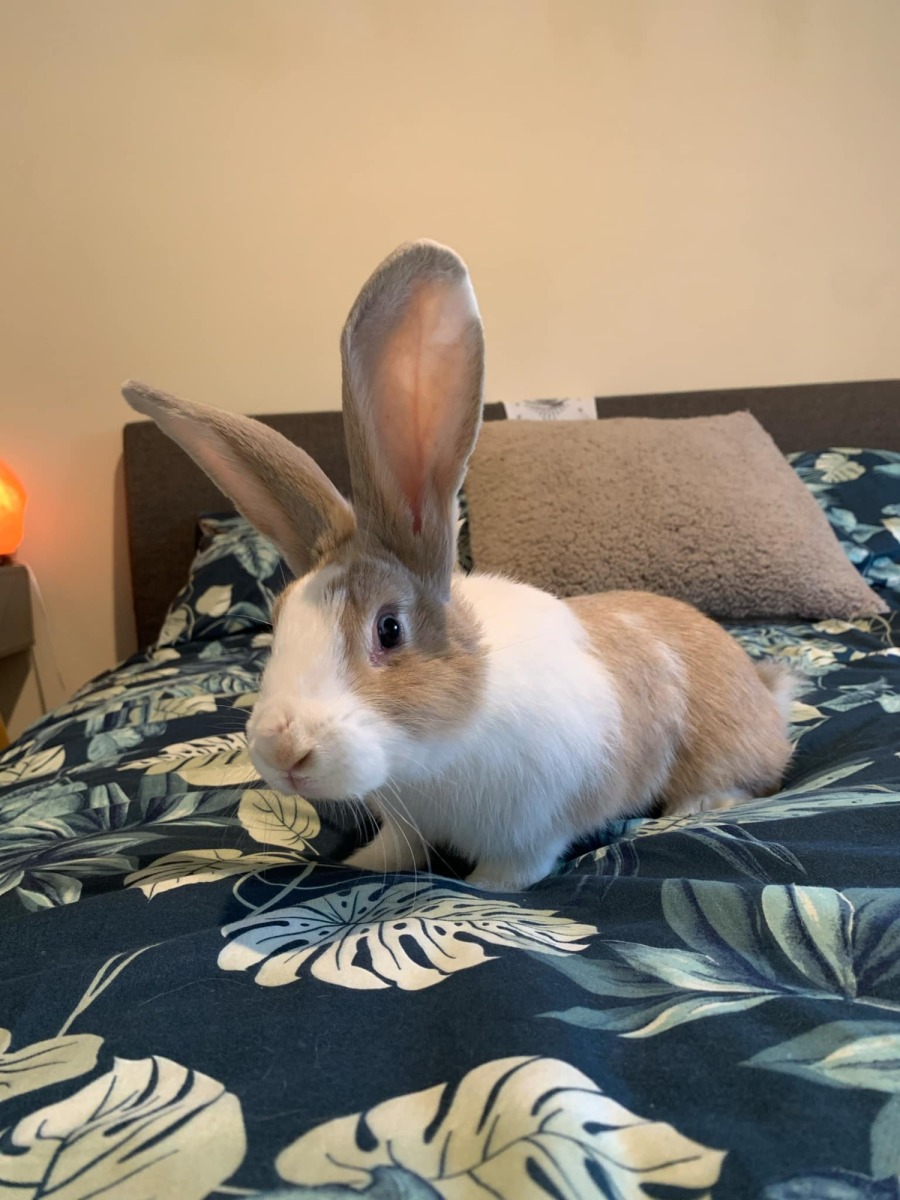 Cosmo delights in exploring her world and exercising her curious mind with new toys and challenges. You'll often find her tossing empty plastic bowls or wooden cubes, not just for play but to make mealtime an engaging event by placing them in her food bowl at meal times. Her playful antics are a daily source of entertainment, as she wows with spectacular binkies, swift zoomies, and adorable jumps. Watch her bound up onto the couch to inspect any snacks you might have, though a word to the wise: keep the remote control safely stored away, as Cosmo views it as an irresistible bunny toy!