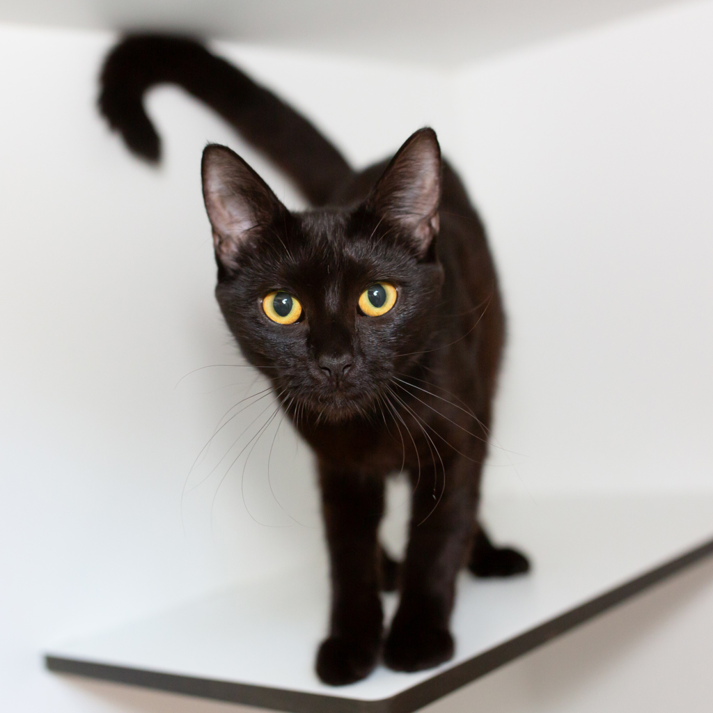 Meet Minerva, a sleek black beauty with the charm and wisdom of a true witchy familiar! This confident, chatty girl loves everyone she meets-people, other pets, and even the occasional shadow to chase. Always curious and full of personality, Minerva will happily supervise your day while offering her opinions in adorable meows. If you're looking for a clever, affectionate companion who will enchant your home with love and laughter, Minerva is ready to cast her spell on you!