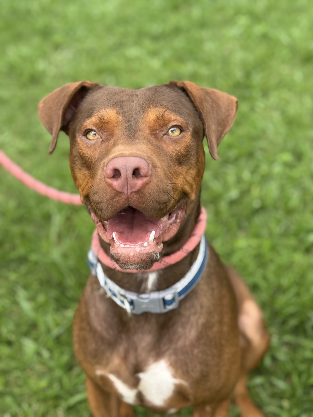 I'm a young, sweet, friendly, and slightly goofy chap. If you're looking for a loyal friend who doubles as your personal comedian, I'm your guy! I promise, with me around, there's never a dull moment! I love zooming around the yard and playing ball. I am quite the looker with my expressive eyebrows and loving nature. I don't mind another dogs company so if you have a friend I would like to meet them first. come and meet me and let's start our adventure together.