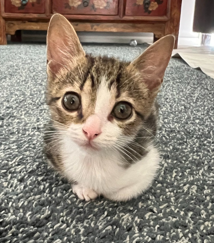 Little Tinsel is everything you would want in a furry companion – friendly, inquisitive and bursting with energy. Whether he is chasing after a toy, exploring every nook and cranny with his curious little paws or curling up in your lap for a snuggle, Tinsel does it all with a heart full of joy and the biggest happiest purrs you’ve ever heard.
