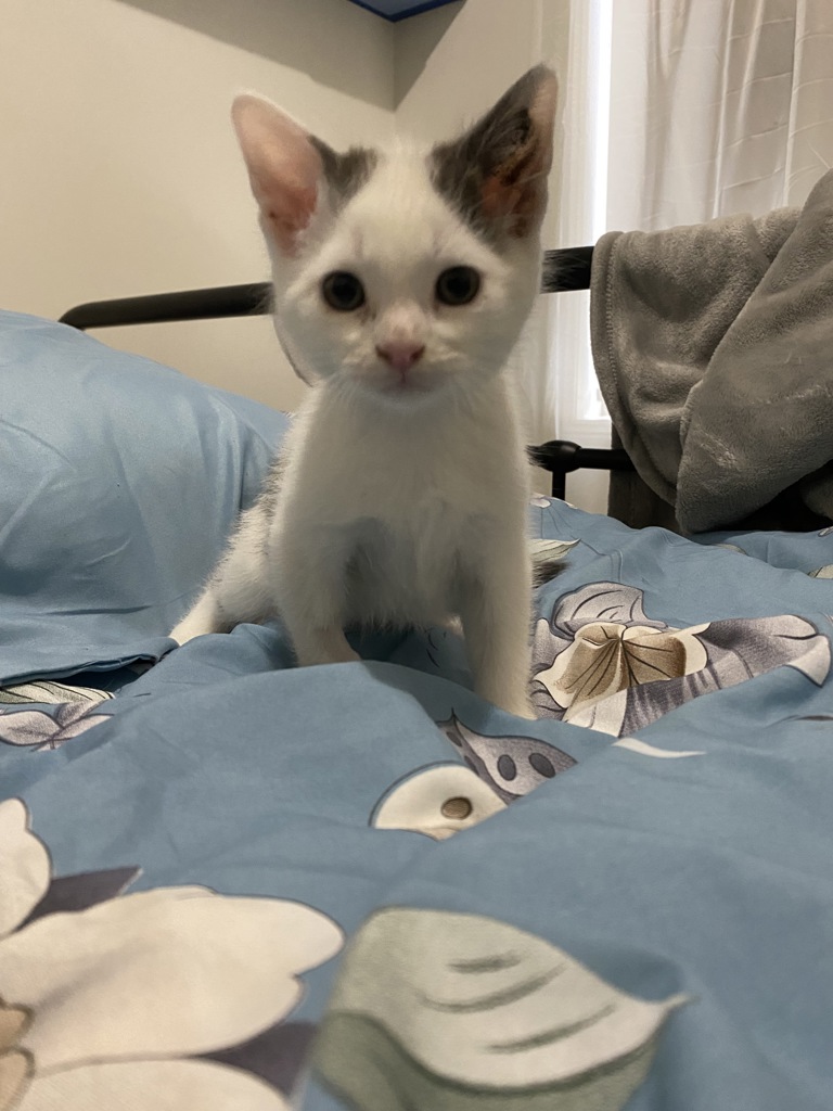 Jimmy is an adorable 8-week-old kitten with a playful spirit and a heart full of love. This sweet boy is always up for an adventure, whether it's chasing after toys, pouncing on imaginary foes, or exploring every nook and cranny. When he's not busy playing, Jimmy loves to curl up for snuggles, purring contently as he soaks up all the affection. With his curious nature and gentle personality, Jimmy is sure to bring endless joy and laughter to his forever home. Could he be the perfect new addition to your family?