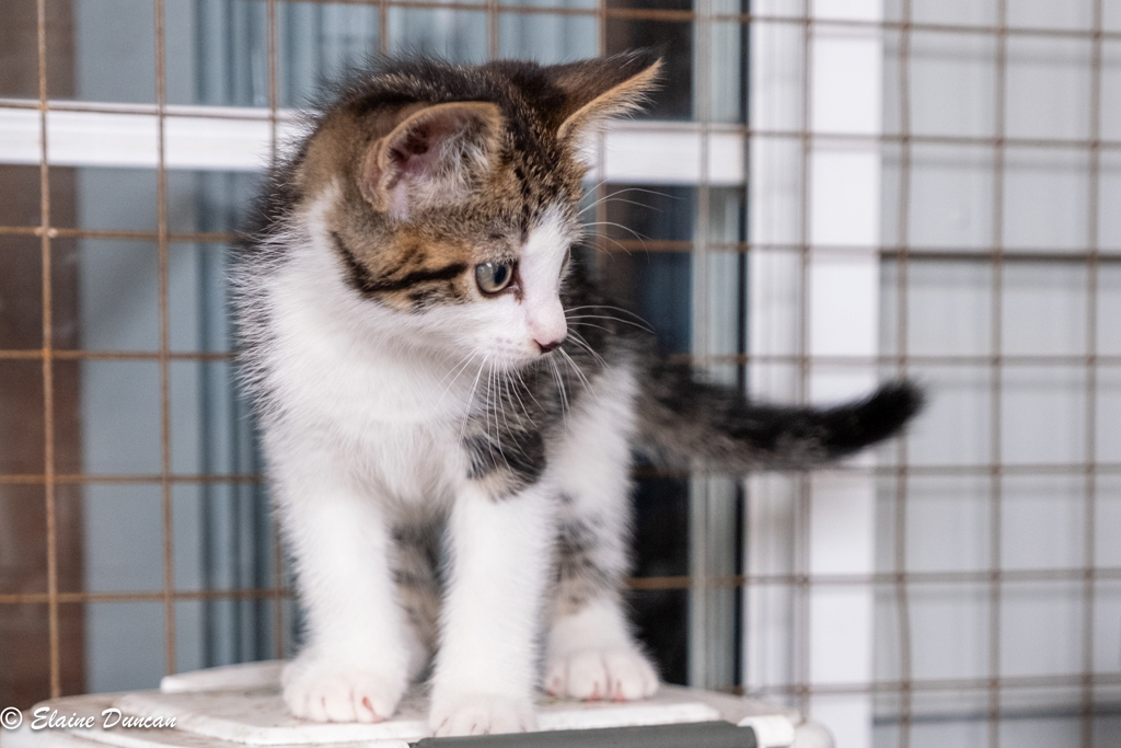 Goose is a playful, adorable, highly entertaining and smoochy kitten. He loves his humans, young and old and is very curious about the adult cats and dog in his foster home. Goose loves to play and he definitely doesn't have expensive tastes; he can find joy in the simplest of things. His favourite toys are pipe cleaners, tissues, empty toilet rolls and hair ties.